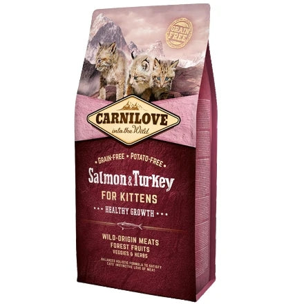 Aliment complet, sans céréale, saveur saumon et dinde pour chatons jusqu'à 12 mois et chattes en lactation ou en gestation, de toutes races.