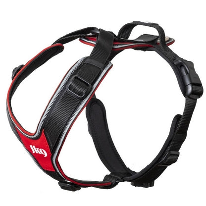 La poignée solide et résistante vous permet d'aider votre chien même sur les terrains les plus difficiles ! Avec le harnais pour chien JK9®Speed, rien ne pourra vous arrêter : grâce à ce harnais à poignée robuste située au dos du harnais, non seulement votre animal pourra vous tirer sur les pentes raides, mais vous pourrez l'aider vous aussi en le soulevant s'il se retrouve dans une situation délicate (dans la boue ou l'eau). L'anneau de fixation ultra-solide de la laisse a été spécialement conçu pour résister à toutes les contraintes. Les matériaux et le design du rembourrage du harnais a été inspiré par les sièges des voitures de sport. Sa surface intérieure est doublée de néoprène, qui n'absorbe pas l'humidité et est facile à nettoyer. C'est un harnais pour chiens agréable à porter en toutes saisons et en toutes circonstances. Vous courez de nuit ? Aucun souci, vous et votre chien vous sentirez en sécurité grâce aux coutures réfléchissantes, vous rendant visibles même dans l'obscurité.