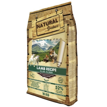 La recette à l'agneau de Natural Greatness est une excellente recette ultra-premium et hypoallergénique formulée sans céréales, idéalement développée pour les chiens adultes à la digestion sensible, les chiots, les femelles enceintes ou allaitantes de races moyennes et grandes, ou pour ceux qui ont tout simplement besoin d'une alimentation de haute qualité.